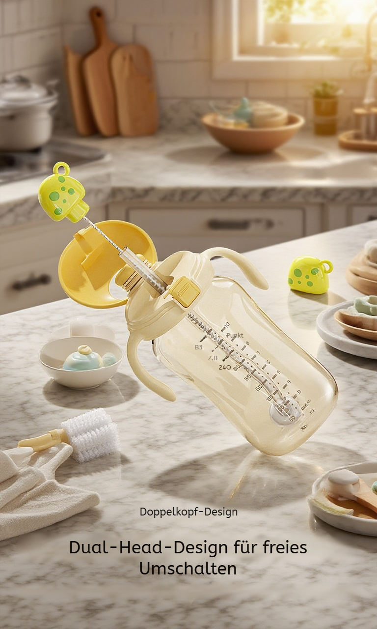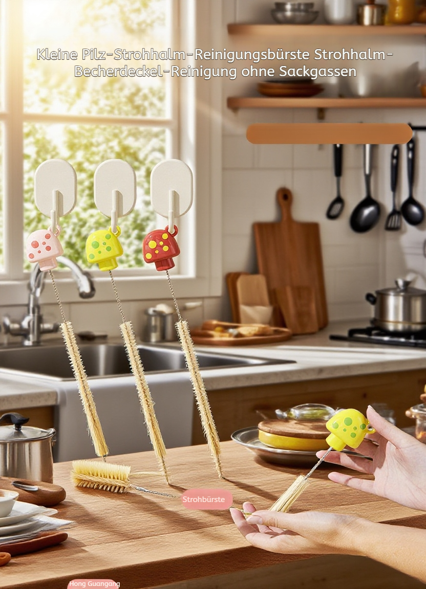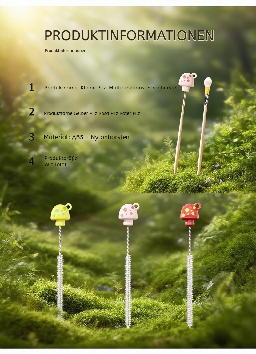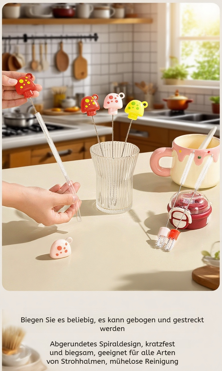 Duale Herz-Tassenbürste, Flaschen- und Strohhalmbürste, Pilzförmige Baby-Reinigungsbürste
